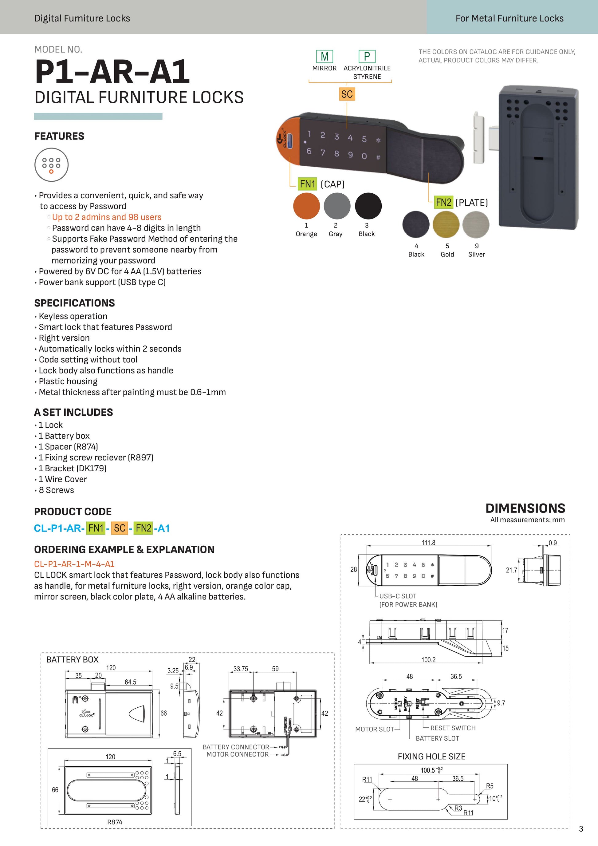 Dành cho tủ nội thất sắt: P1-AR-A2