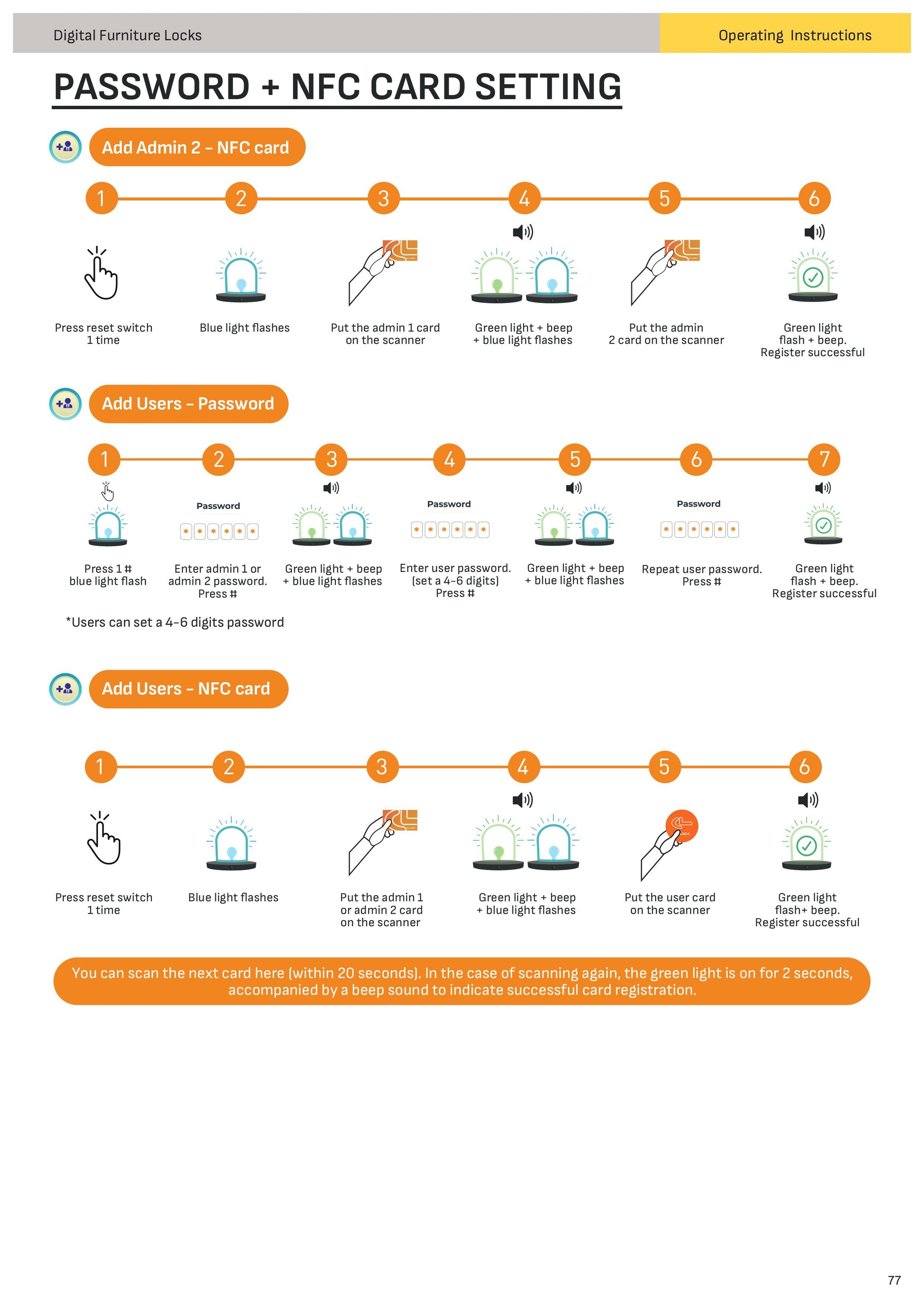 • Hệ thống 2-trong-1: khóa thông minh tích hợp mật khẩu và NFC