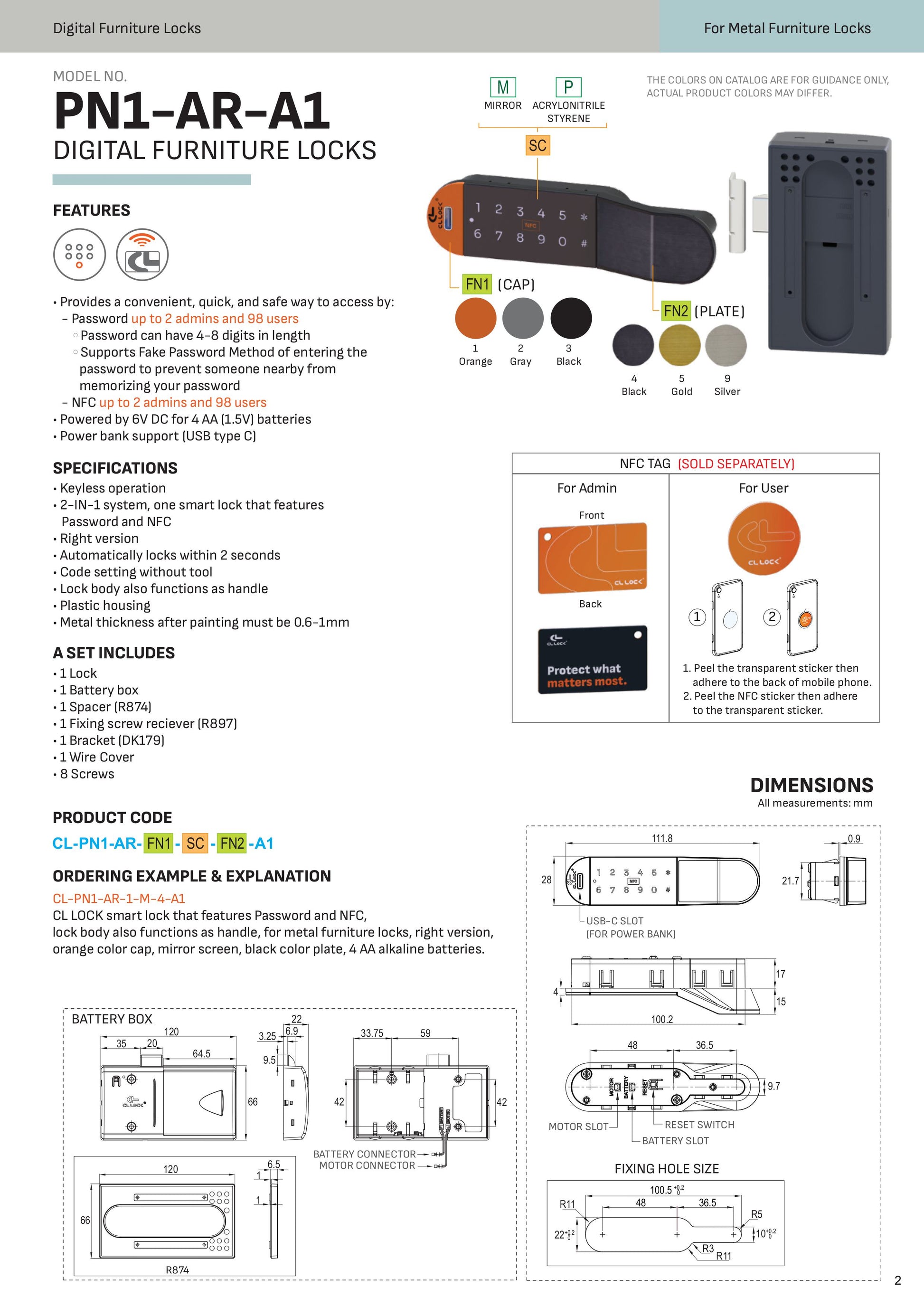 Dành cho tủ nội thất sắt: PN1-AR-A2