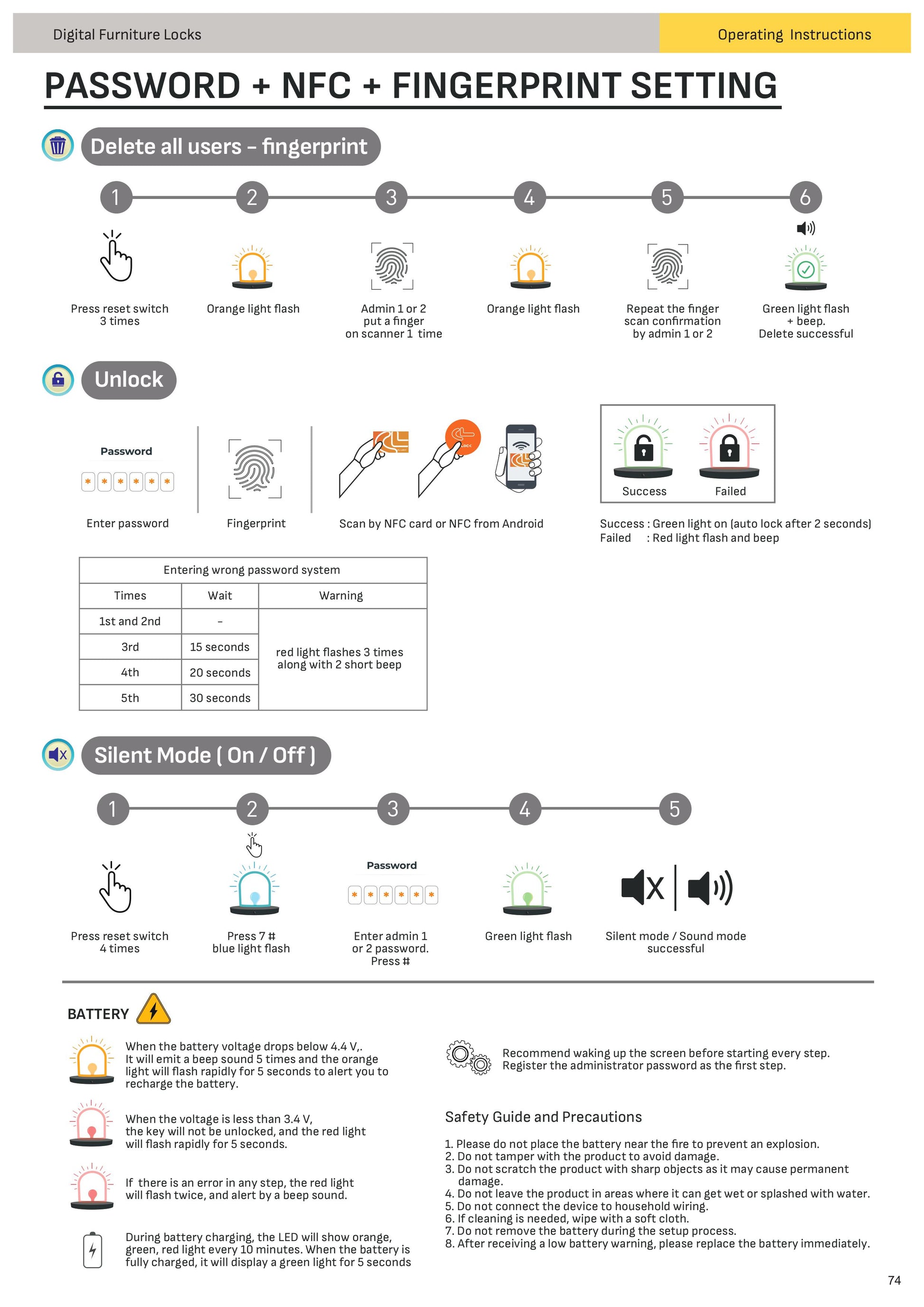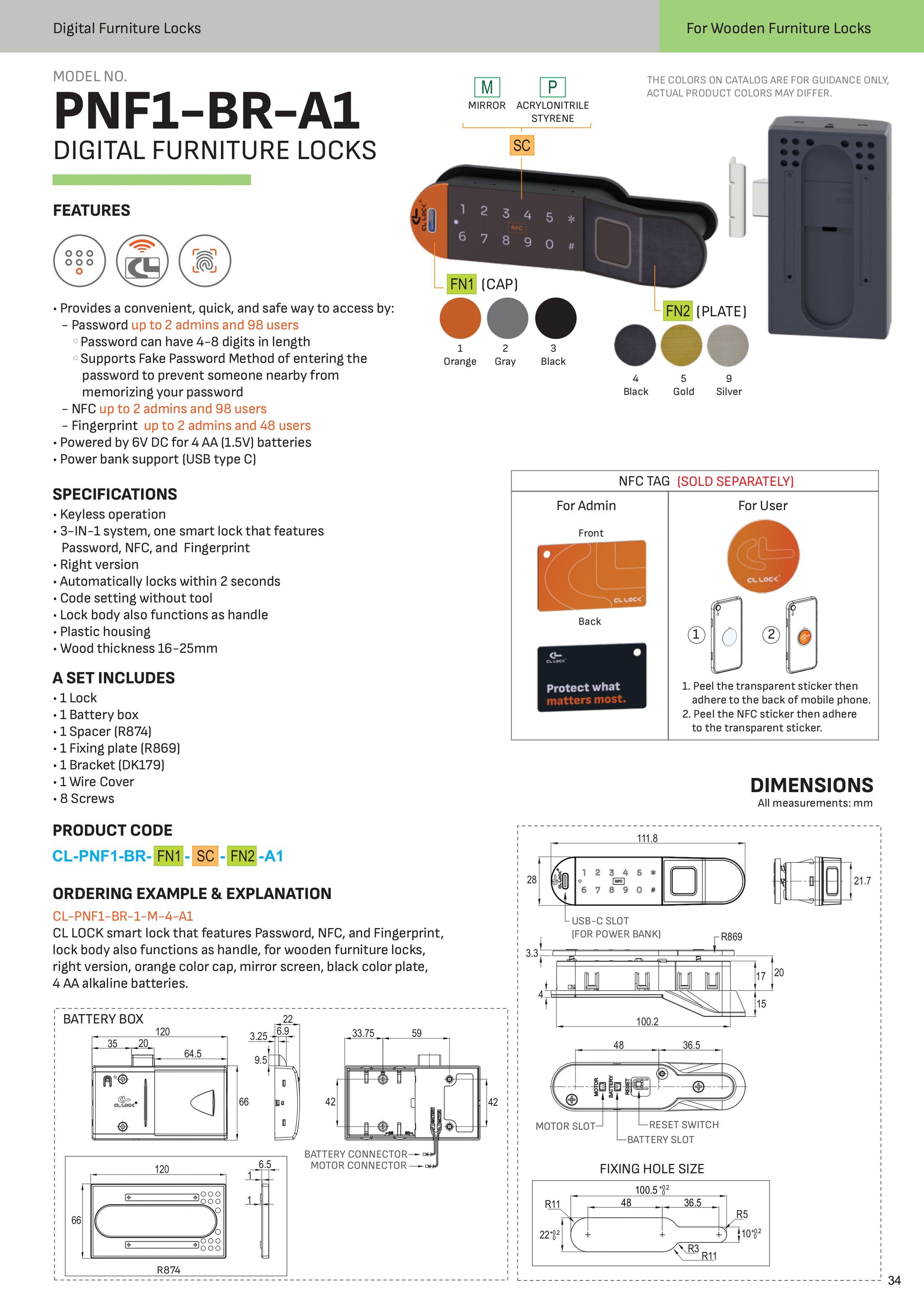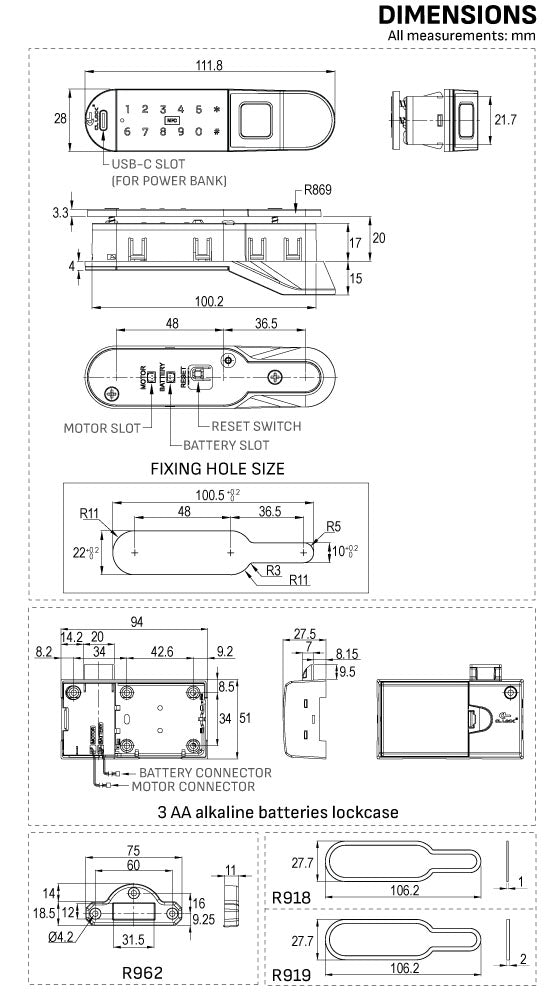 - Hệ thống 3-trong-1: khóa thông minh tích hợp mật khẩu, NFC và vân tay
