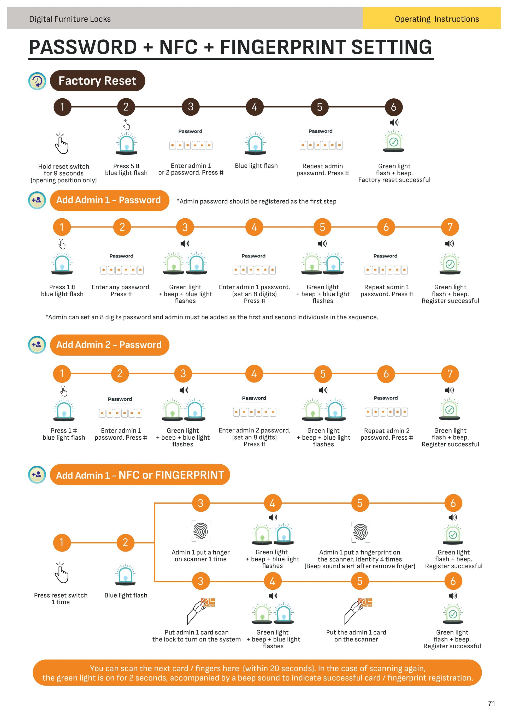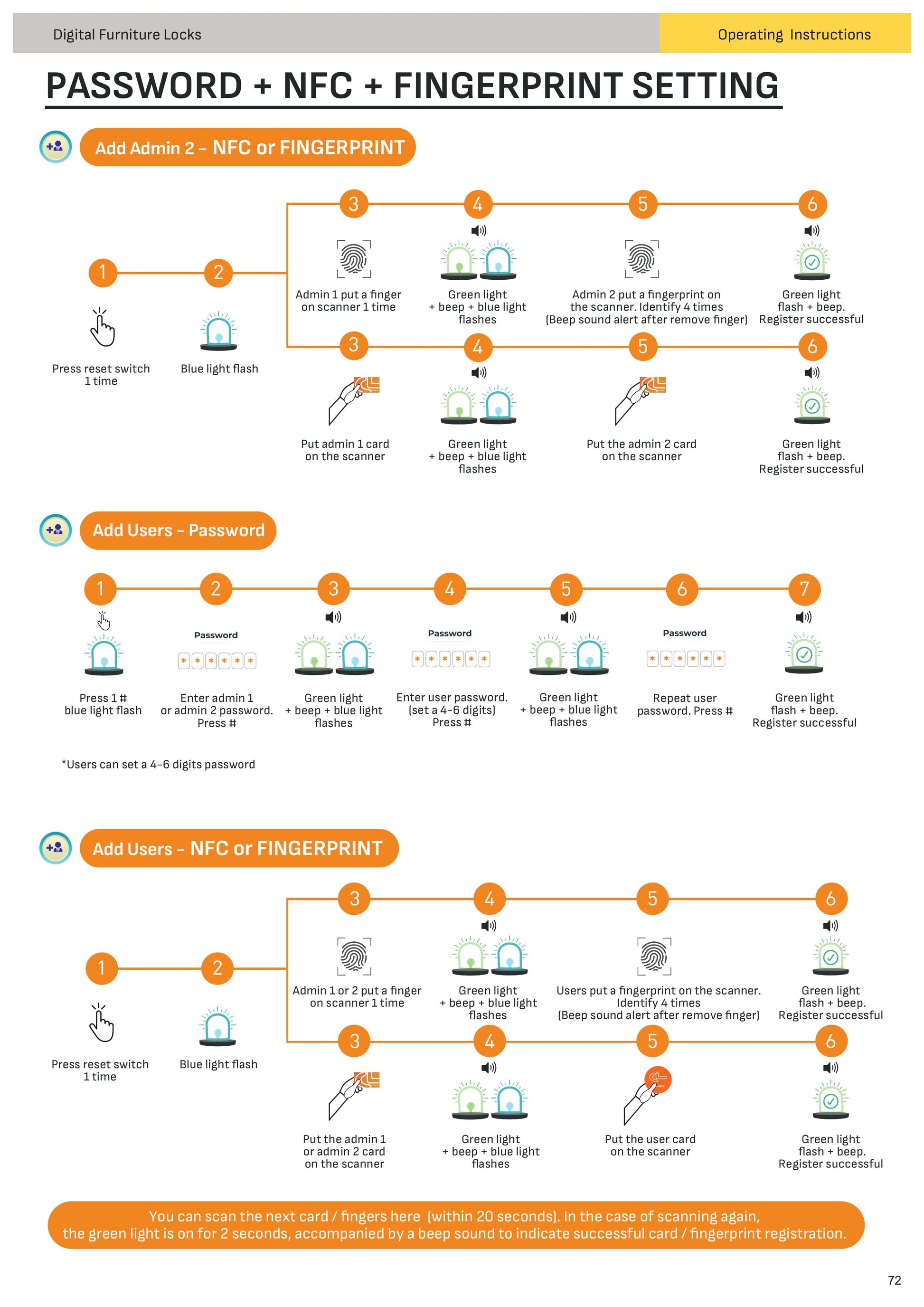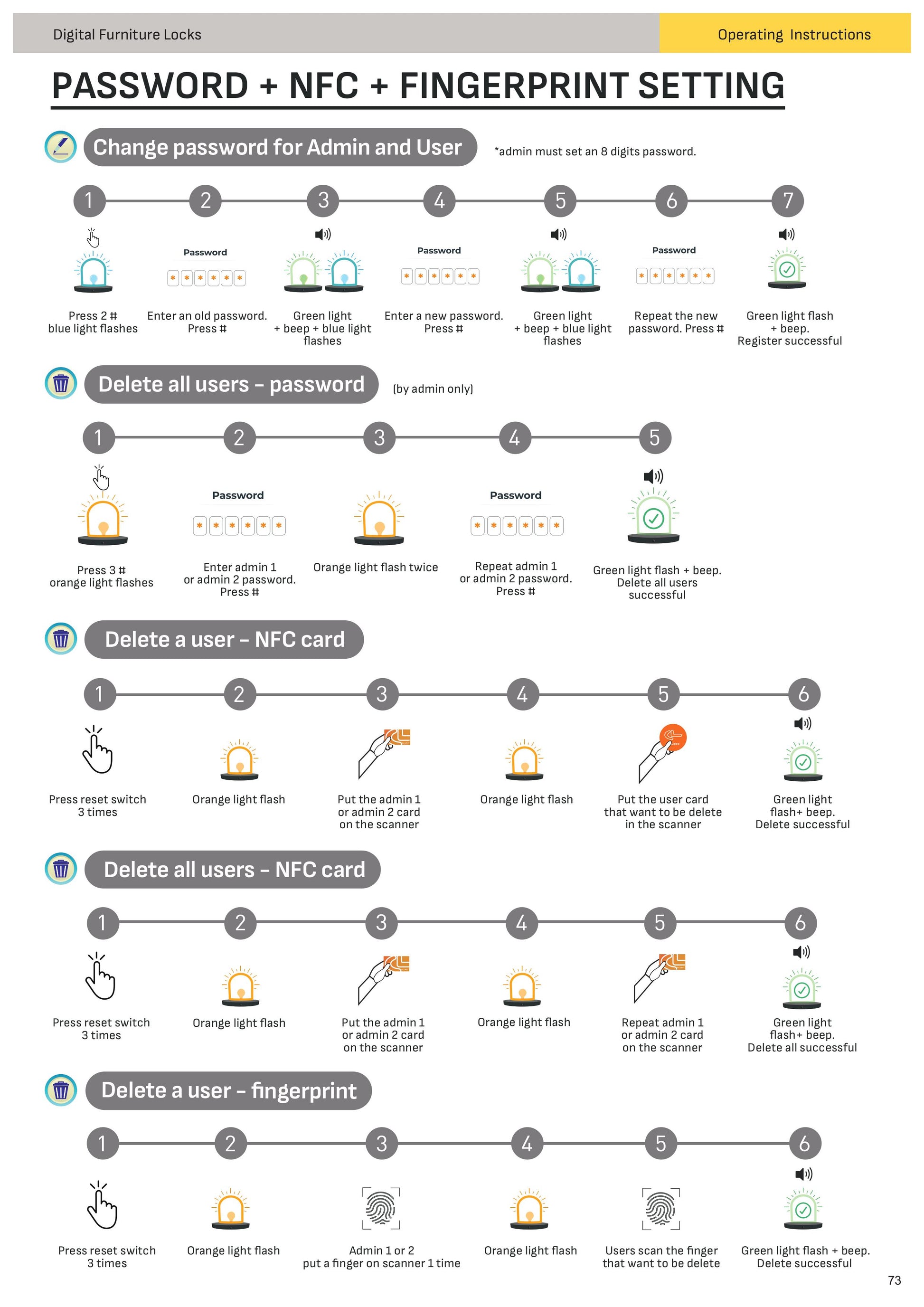 - Hệ thống 3-trong-1: khóa thông minh tích hợp mật khẩu, NFC và vân tay