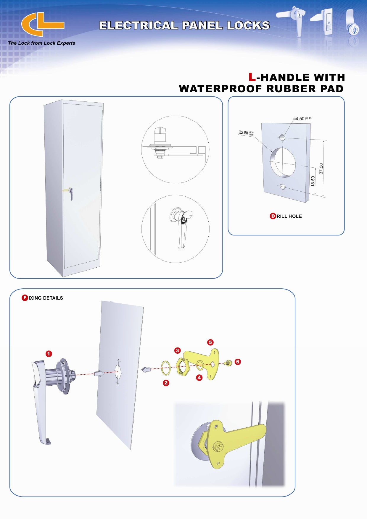 • Tay nắm chữ L có đệm cao su chống nước (L-handle with waterproof rubber pad).